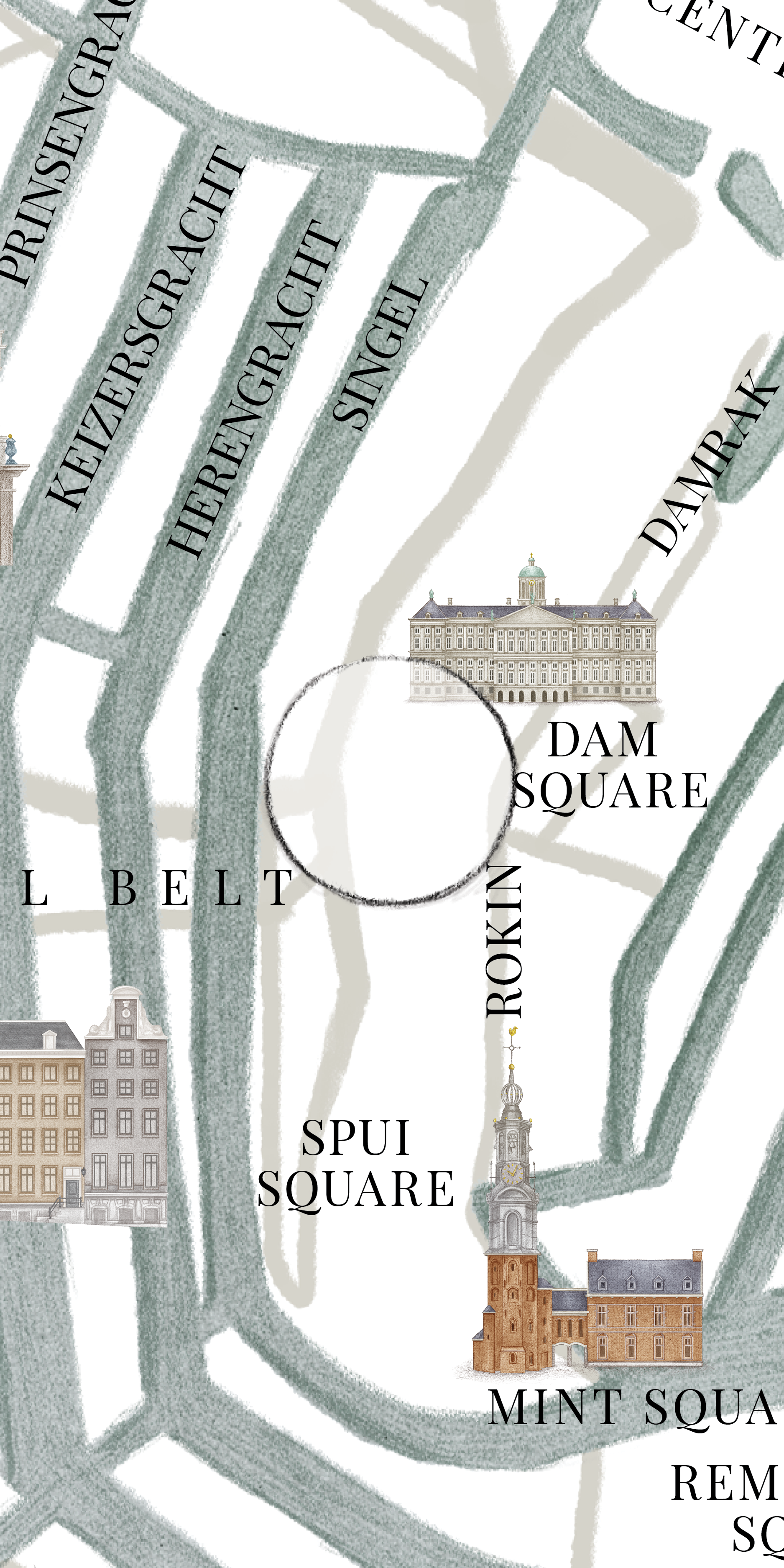 X Bank is located on Spuistraat, right around the corner from Dam Square, behind the Royal Palace.